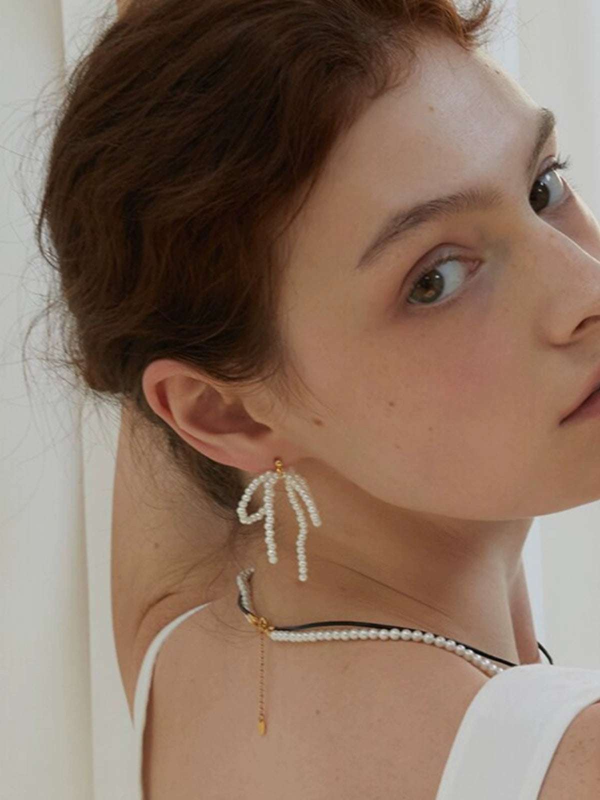 Pearl Ribbon Drop Earrings